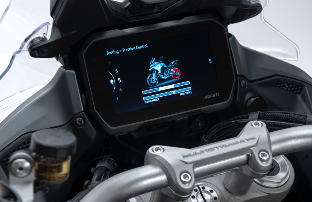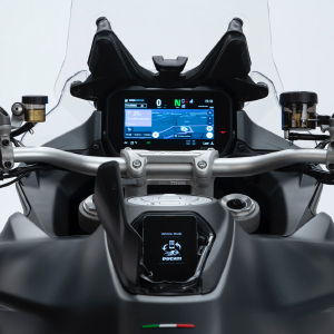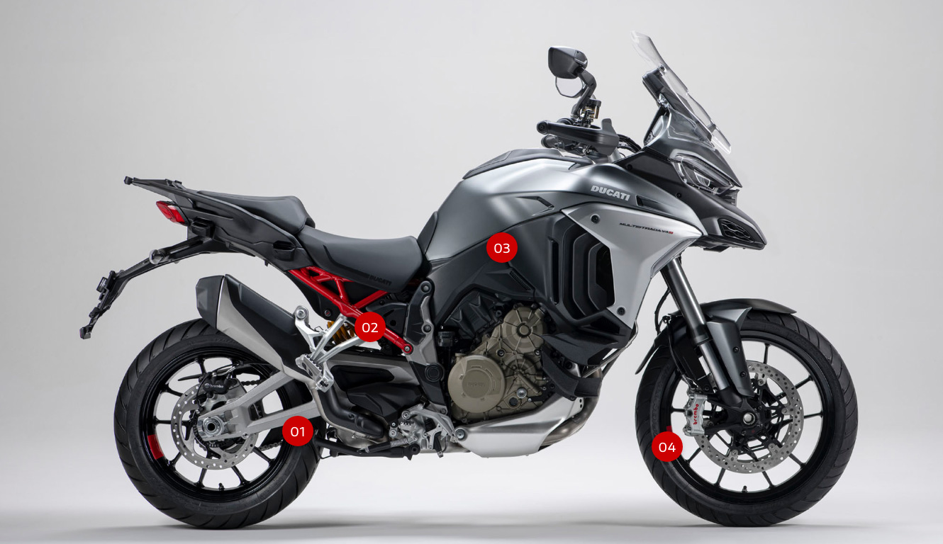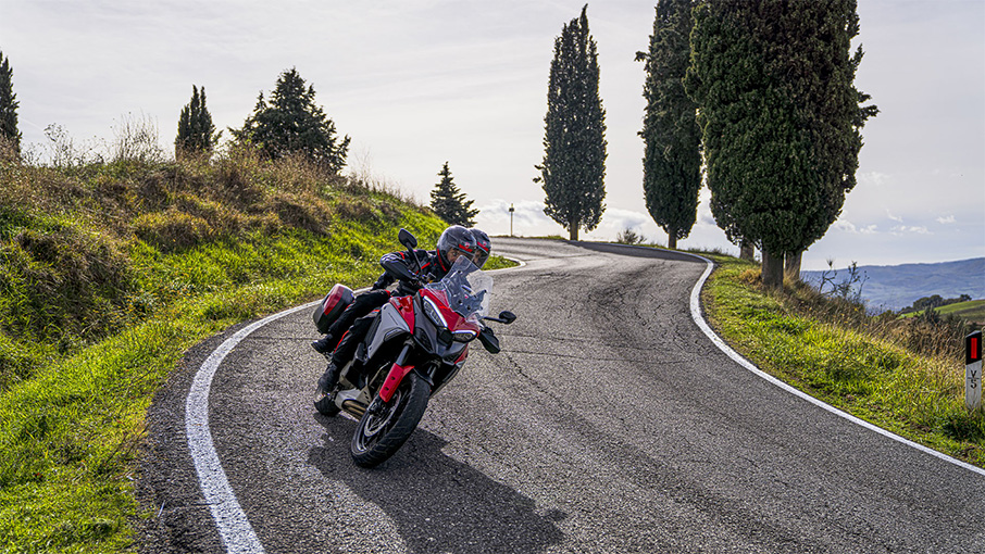 Multistrada V4 готов и к дальним поездкам. Мотоцикл оснащен навигационной системой, информация от которой выводится на приборную панель, и инновационными вспомогательными системами на основе радаров — здесь есть все для высочайшего уровня комфорта. Первое серьезное техническое обслуживание потребуется только после 60 000 км пробега.